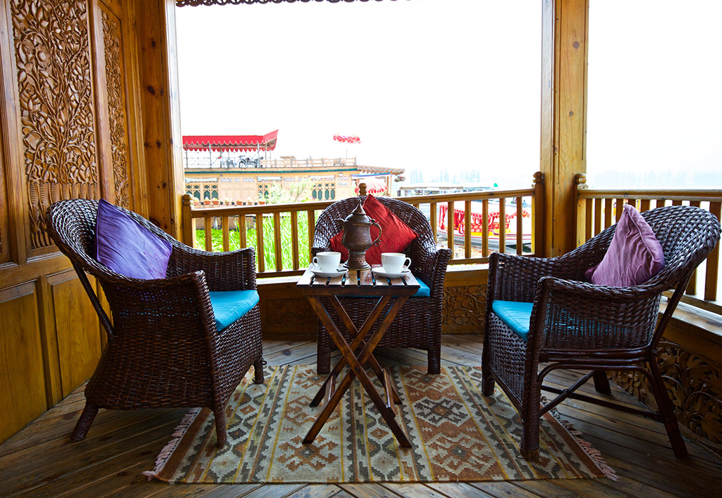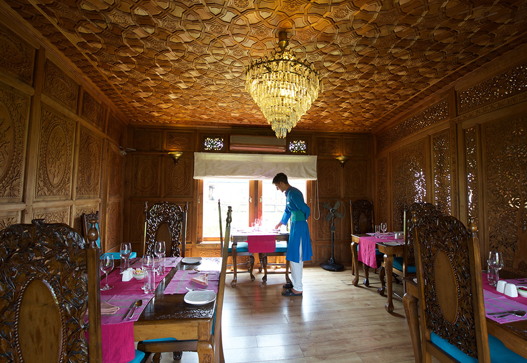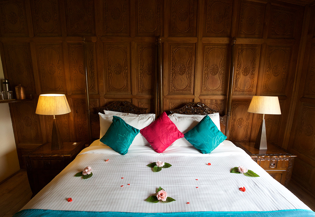 Set among floating gardens of flowering lotus in a secluded corner of Dal Lake, with views of the misty Pir Panjal mountains, fairytale hilltop forts and temples, the Sukoon Houseboat has been sensitively restored to seamlessly blend the old-world charm of a traditional houseboat with modern comforts. Original intricate carved wood panelling, ornate chandeliers, whirring fans, creaky pine floors and colonial style furniture are complemented with cool cream linens and colourful silks to add a contemporary twist.